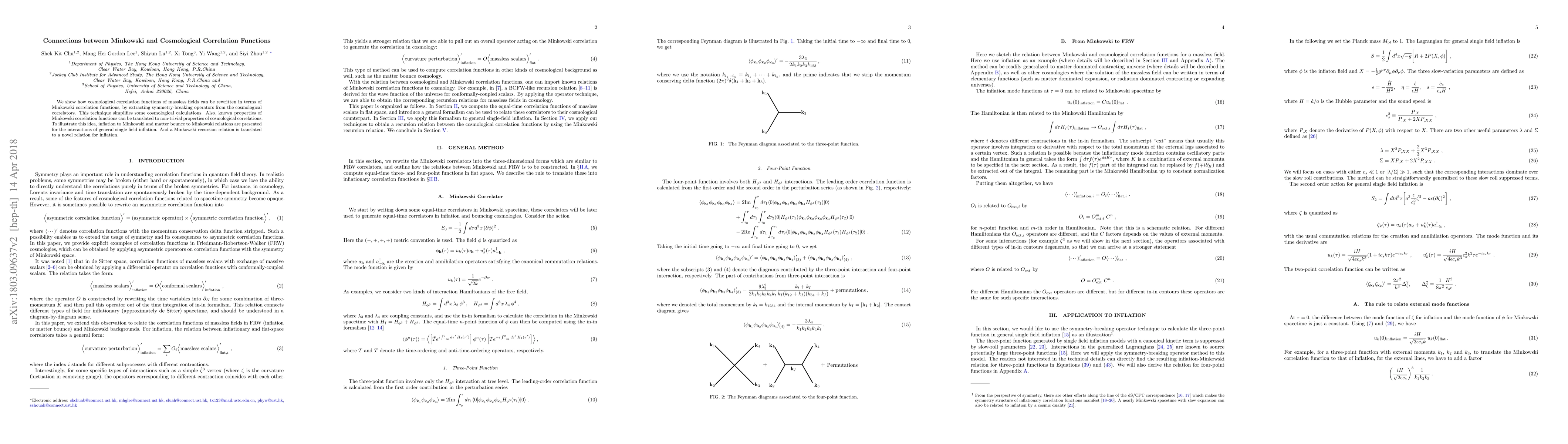 Researchers show how cosmological correlation functions can be rewritten in terms of Minkowski correlation functions, simplifying certain calculations and translating known properties between the two.
