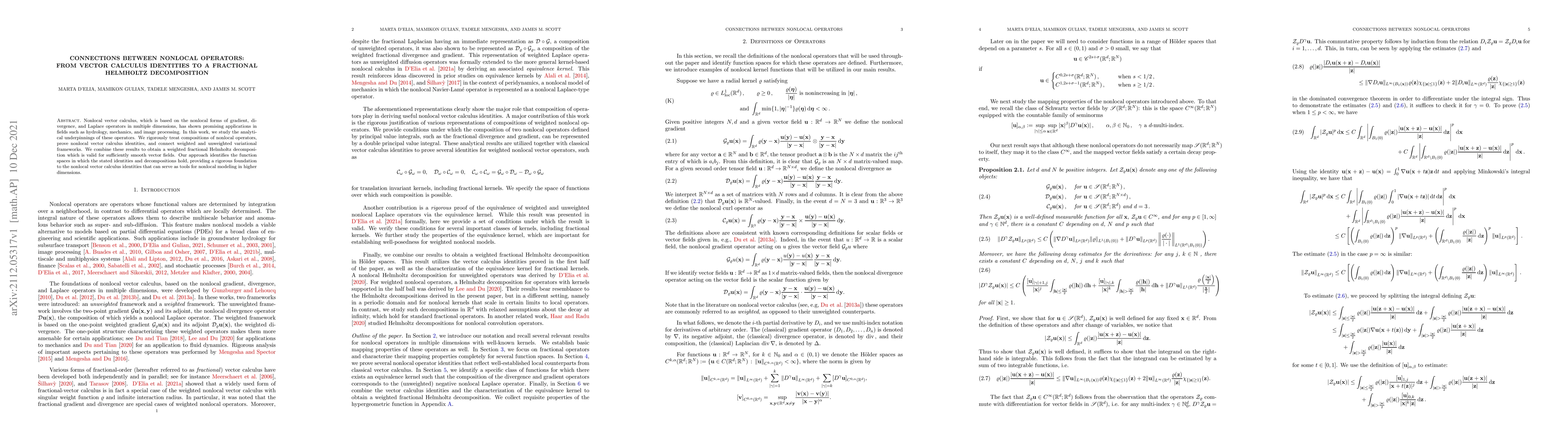 This paper explores the analytical foundations of nonlocal vector calculus, proving identities and connections between nonlocal operators. It culminates in a weighted fractional Helmholtz decomposition for smooth vector fields, establishing rigorous function spaces for these results and offering tools for nonlocal modeling in higher dimensions.