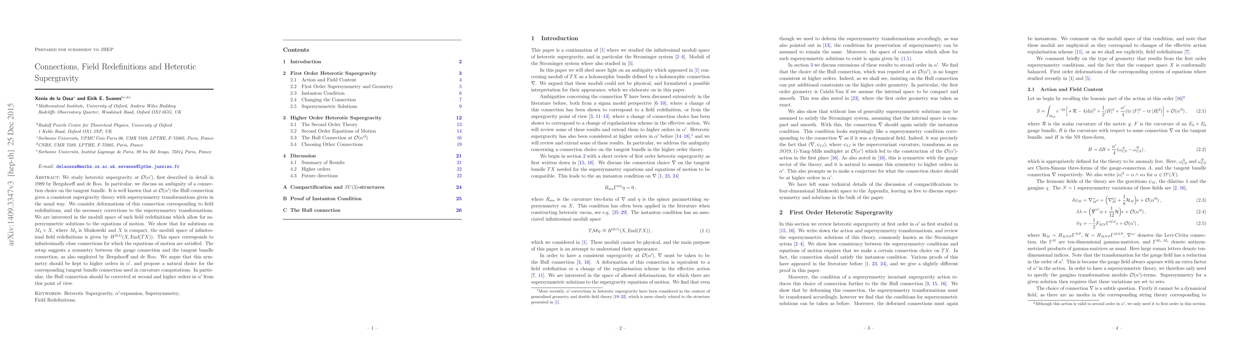 This paper investigates heterotic supergravity at $\mathcal{O}(\alpha')$ and explores the ambiguity in connection choices on the tangent bundle. It examines field redefinitions and their impact on the supersymmetry transformations, identifying the moduli space of such redefinitions that maintain supersymmetric solutions.