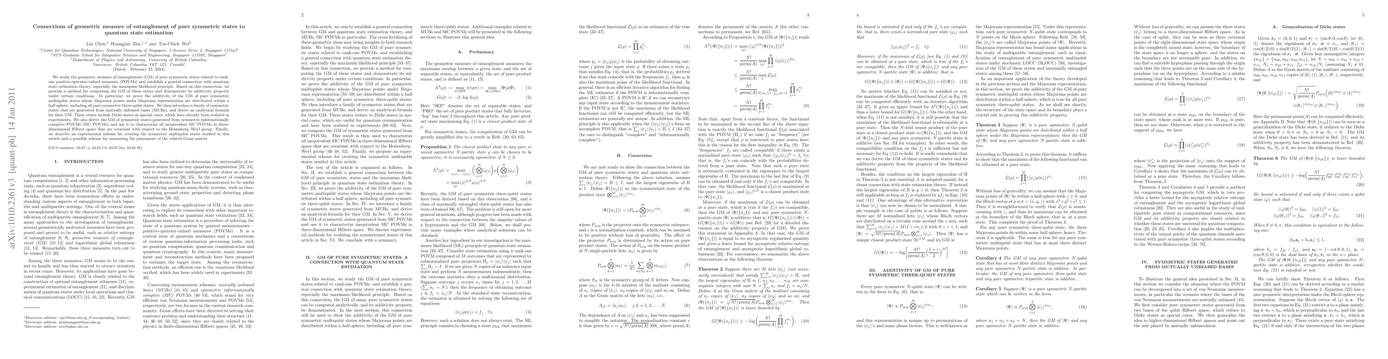 This paper establishes a connection between the geometric measure of entanglement (GM) of pure symmetric states and quantum state estimation, particularly the maximum likelihood principle. It provides a method for computing the GM and proves its additivity for certain symmetric multiqubit states, including all pure symmetric three-qubit states.