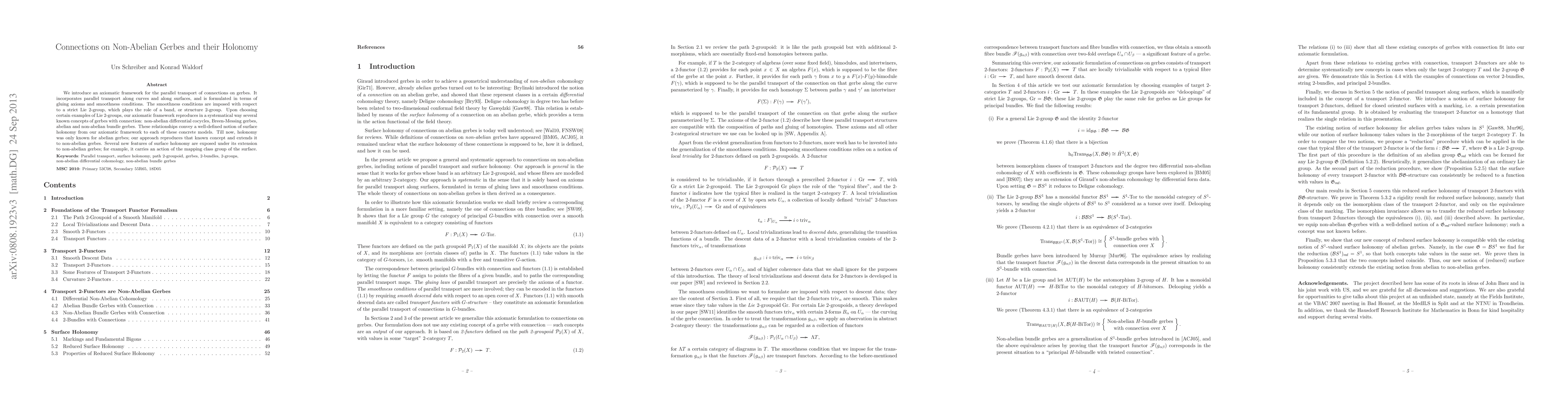 This paper proposes an axiomatic framework for parallel transport on non-abelian gerbes, incorporating both curve and surface transport, and introduces a notion of surface holonomy that extends beyond abelian gerbes to include non-abelian cases, revealing new features like mapping class group actions.