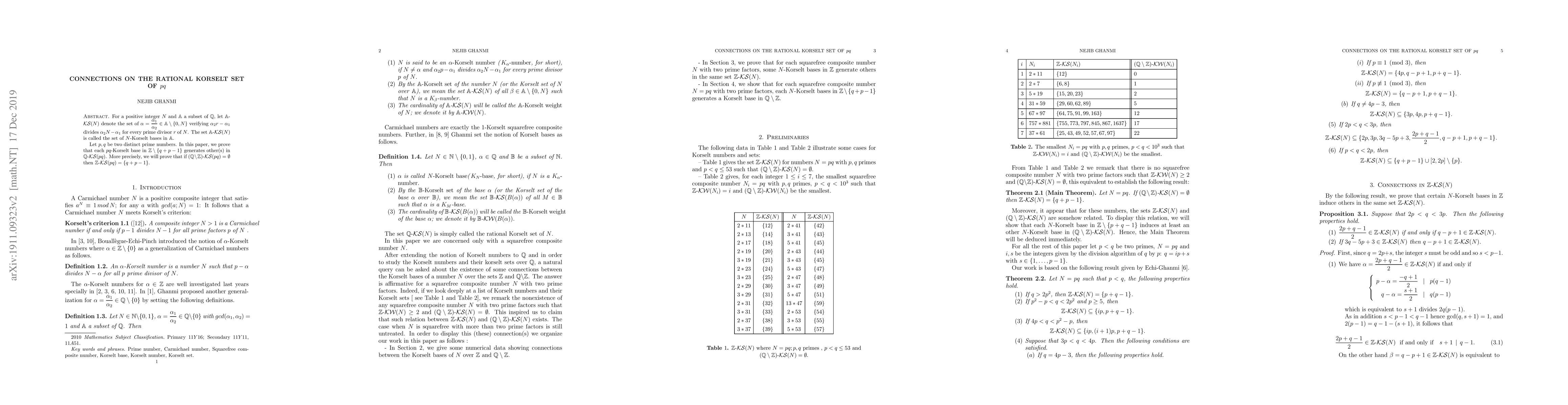 For a positive integer $N$ and $\mathbb{A}$ a subset of $\mathbb{Q}$, let $\mathbb{A}$-$\mathcal{KS}(N)$ denote the set of $\alpha=\dfrac{\alpha_{1}}{\alpha_{2}}\in \mathbb{A}\setminus \{0,N\}$ verifying $\alpha_{2}r-\alpha_{1}$ divides $\alpha_{2}N-\alpha_{1}$ for every prime divisor $r$ of $N$. The set $\mathbb{A}$-$\mathcal{KS}(N)$ is called the set of $N$-Korselt bases in $\mathbb{A}$. Let $p, q$ be two distinct prime numbers. In this paper, we prove that each $pq$-Korselt base in $\mathbb{Z}\setminus\{ q+p-1\}$ generates other(s) in $\mathbb{Q}$-$\mathcal{KS}(pq)$. More precisely, we will prove that if $(\mathbb{Q}\setminus\mathbb{Z})$-$\mathcal{KS}(pq)=\emptyset$ then $\mathbb{Z}$-$\mathcal{KS}(pq)=\{ q+p-1\}$.