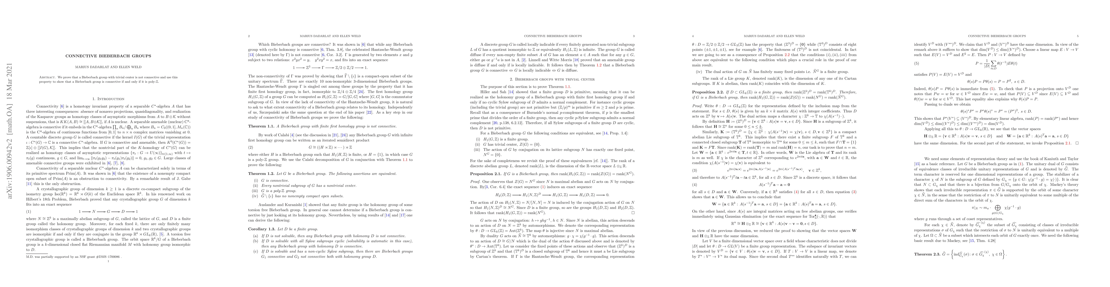 We prove that a Bieberbach group with trivial center is not connective and use this property to show that a Bieberbach group is connective if and only if it is poly-Z.
