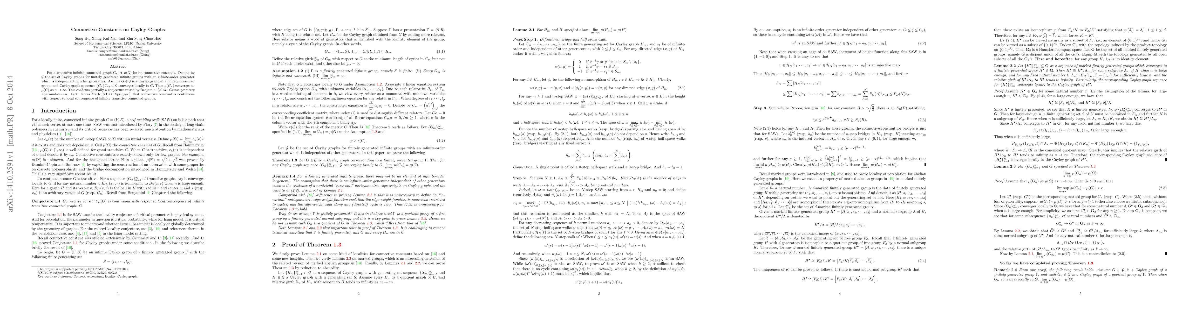 This paper confirms a conjecture that the connective constant of a graph is continuous with respect to local convergence, showing that the limit of the connective constants of a sequence of Cayley graphs converging locally to a graph equals the connective constant of the limit graph.