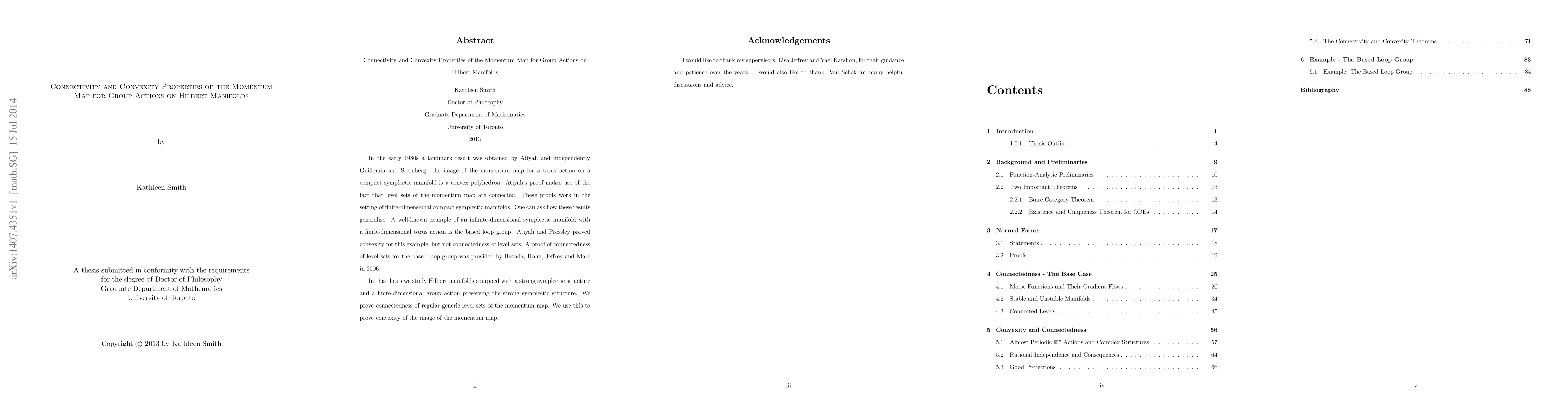In the early $1980$s a landmark result was obtained by Atiyah and independently Guillemin and Sternberg: the image of the momentum map for a torus action on a compact symplectic manifold is a convex polyhedron. Atiyah's proof makes use of the fact that level sets of the momentum map are connected. These proofs work in the setting of finite-dimensional compact symplectic manifolds. One can ask how these results generalize. A well-known example of an infinite-dimensional symplectic manifold with a finite-dimensional torus action is the based loop group. Atiyah and Pressley proved convexity for this example, but not connectedness of level sets. A proof of connectedness of level sets for the based loop group was provided by Harada, Holm, Jeffrey and Mare in $2006$. In this thesis we study Hilbert manifolds equipped with a strong symplectic structure and a finite-dimensional group action preserving the strong symplectic structure. We prove connectedness of regular generic level sets of the momentum map. We use this to prove convexity of the image of the momentum map.