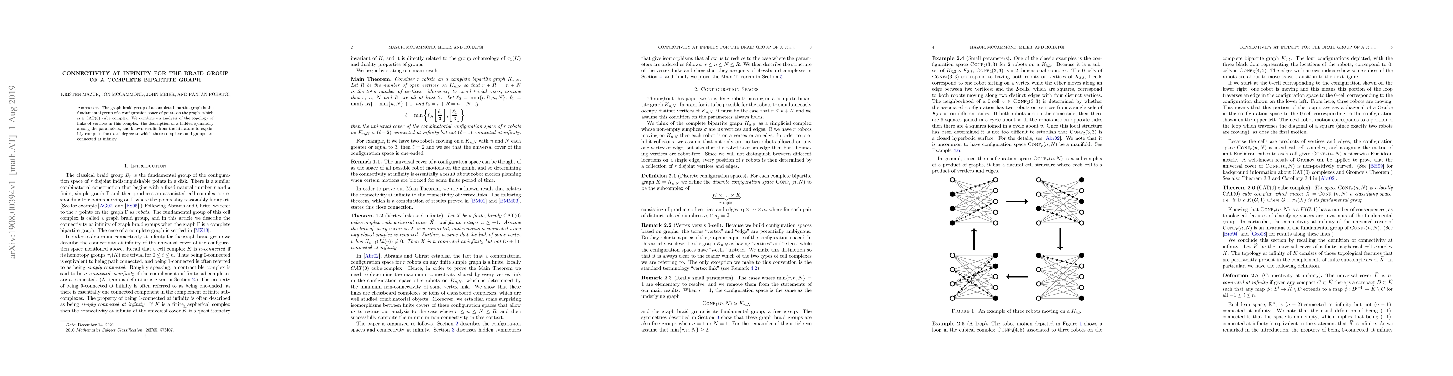 The graph braid group of a complete bipartite graph is the fundamental group of a configuration space of points on the graph, which is a CAT(0) cube complex. We combine an analysis of the topology of links of vertices in this complex, the description of a hidden symmetry among the parameters, and known results from the literature to explicitly compute the exact degree to which these complexes and groups are connected at infinity.