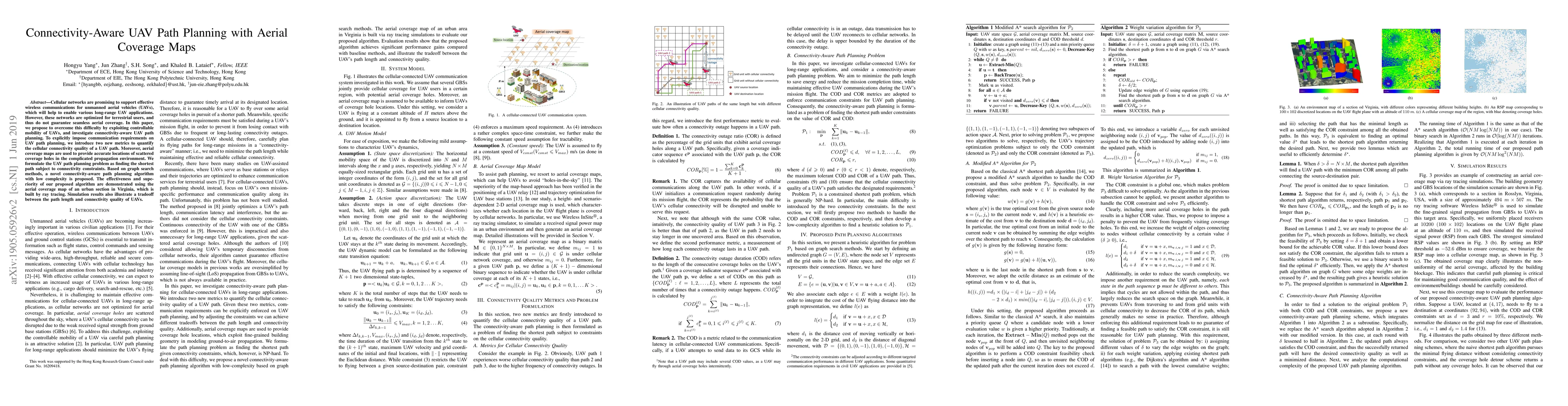 This paper proposes a connectivity-aware UAV path planning method that leverages aerial coverage maps to address gaps in cellular network coverage for UAVs. It introduces new metrics for connectivity quality and presents a low-complexity algorithm based on graph search to optimize UAV paths under connectivity constraints.