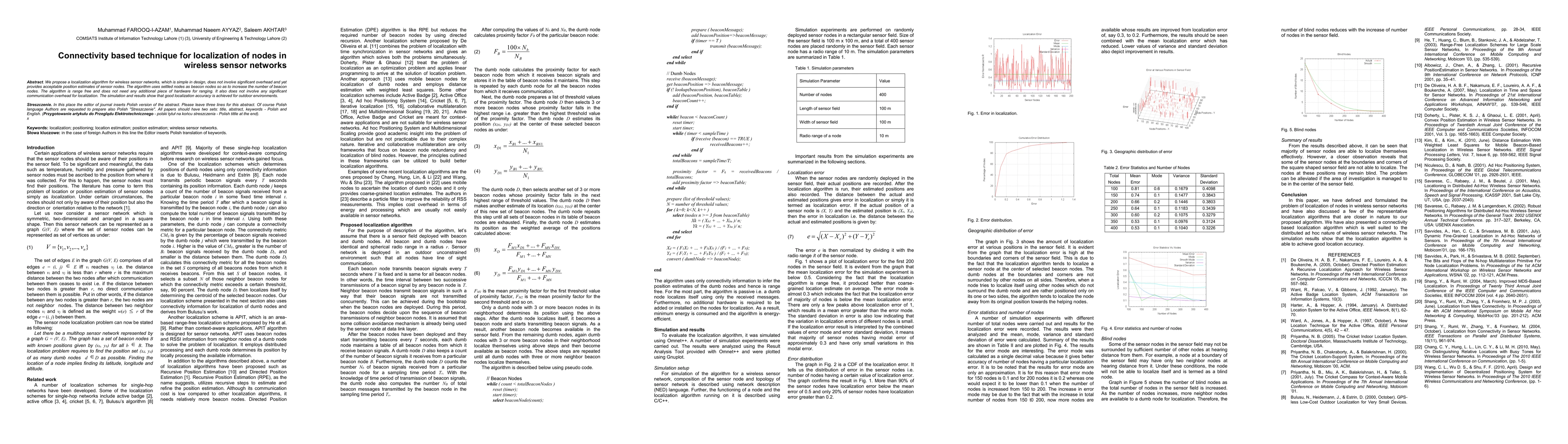 This paper proposes a simple, range-free localization algorithm for wireless sensor networks that uses settled nodes as beacons without requiring additional hardware or significant communication overhead, achieving good localization accuracy in outdoor environments. Simulation results demonstrate the effectiveness of the proposed method.