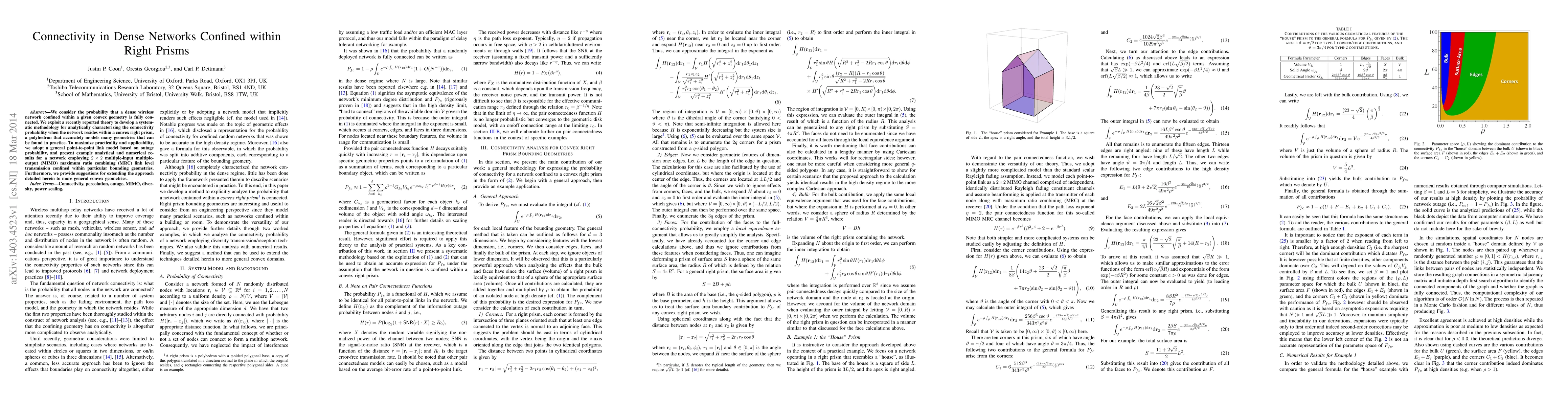 This paper develops a methodology to analyze the connectivity probability of dense wireless networks confined within convex right prisms, using a general point-to-point link model based on outage probability. It presents analytical and numerical results for a $2 \times 2$ MIMO MRC network and suggests extending the approach to more general convex geometries.