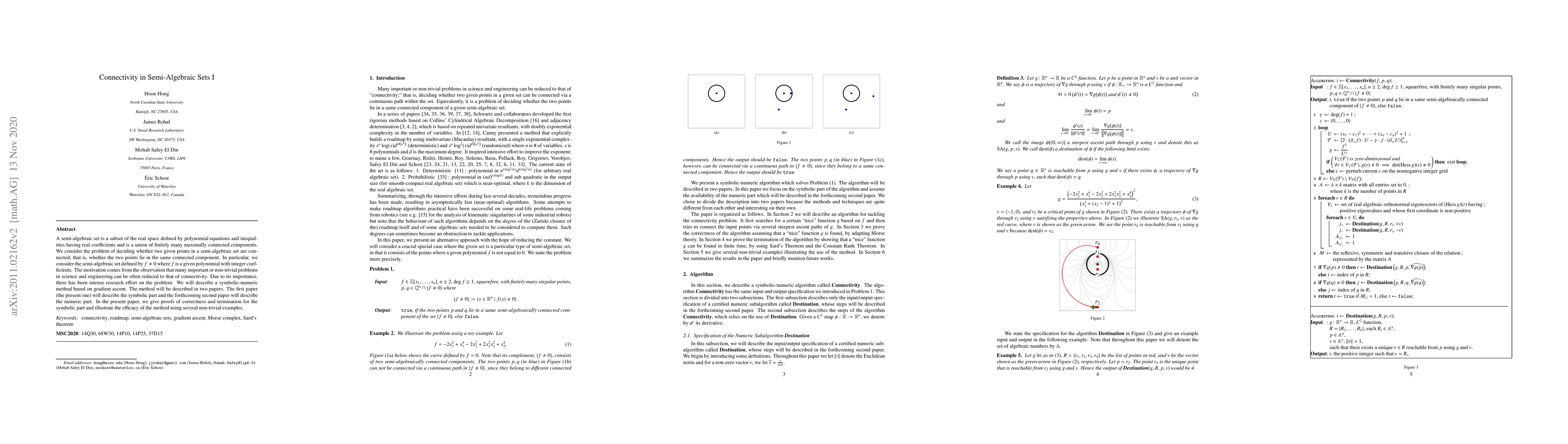 Researchers develop a symbolic-numeric method to determine if two points in a semi-algebraic set are connected, with potential applications in science and engineering. The method uses gradient ascent and has been proven correct and terminated for several non-trivial examples.
