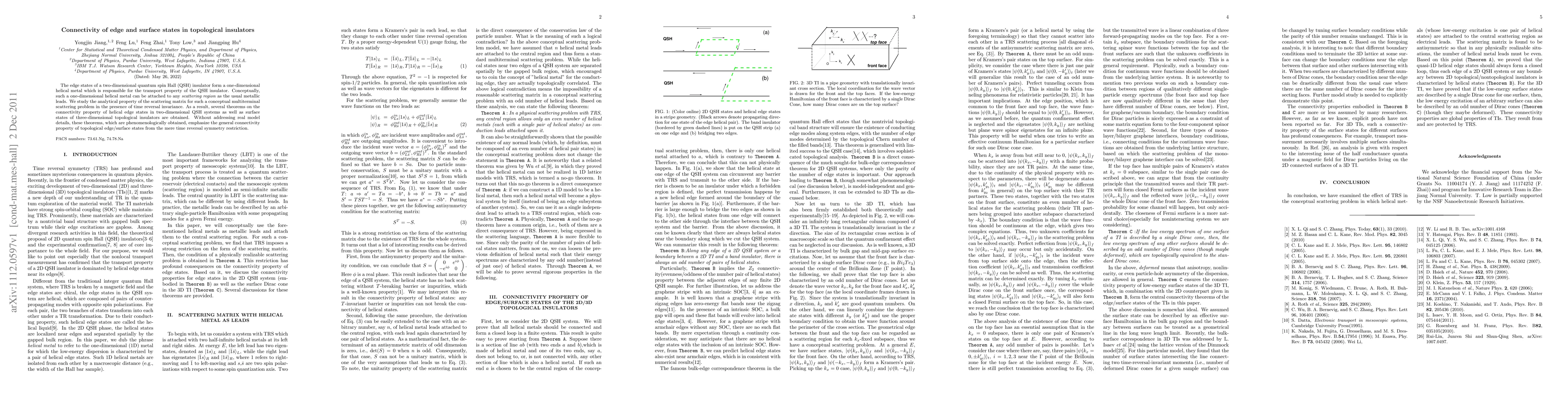 This paper investigates the connectivity properties of edge states in two-dimensional quantum spin Hall insulators and surface states in three-dimensional topological insulators, deriving theorems that highlight their general connectivity under time reversal symmetry. The study focuses on the scattering matrix in a multiterminal scattering problem without delving into specific material details.