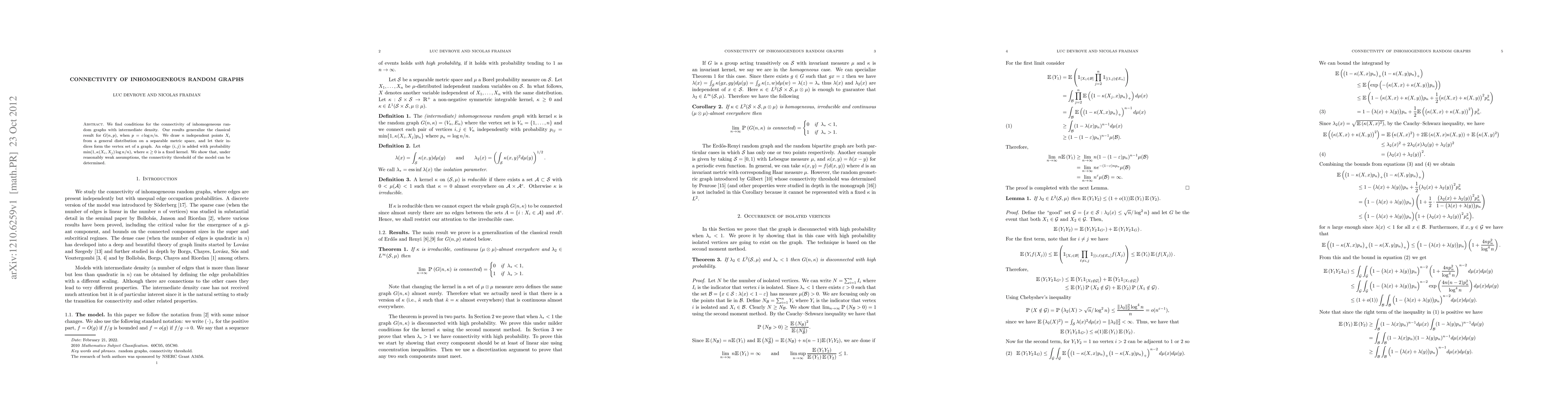 This paper investigates the connectivity conditions for inhomogeneous random graphs with intermediate edge density, generalizing the classical result for G(n, p). It introduces a model where edges are formed based on a kernel function of the distances between points, and demonstrates that under mild assumptions, the connectivity threshold can be determined.