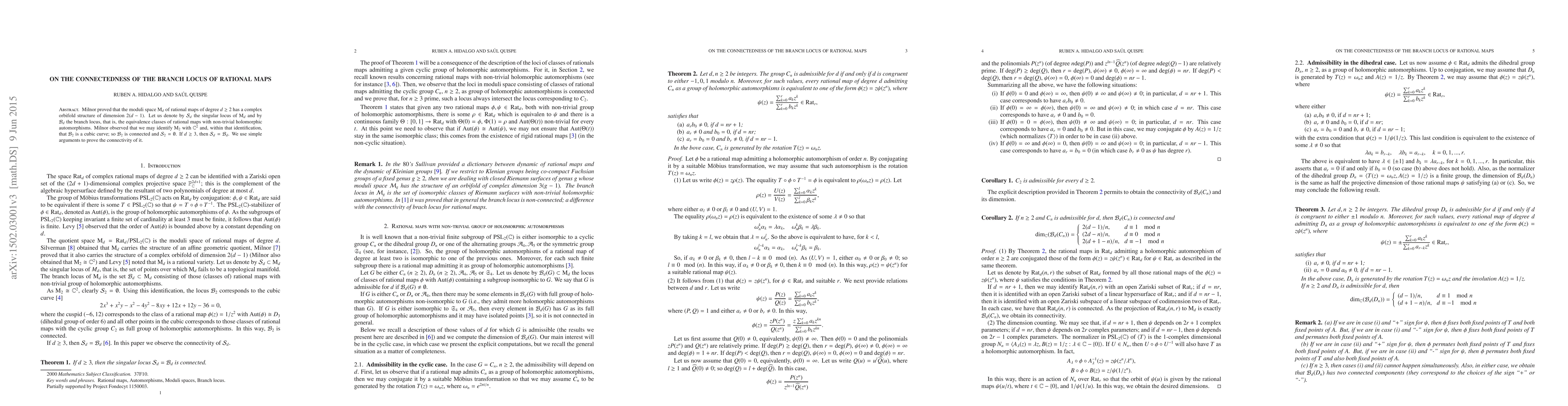This paper investigates the connectivity of the branch locus ${\mathcal B}_{d}$ in the moduli space ${\rm M}_{d}$ of rational maps of degree $d \geq 2$. It demonstrates that for $d \geq 3$, ${\mathcal B}_{d}$ is connected, building on Milnor's earlier work.