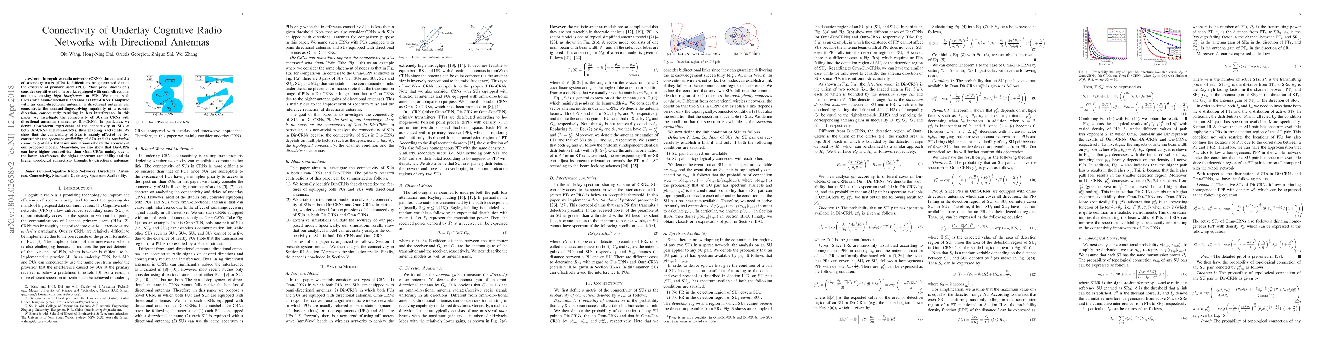 This paper investigates the connectivity of secondary users in cognitive radio networks equipped with directional antennas, deriving closed-form expressions for both directional and omni-directional networks. It demonstrates that directional antennas enhance connectivity through reduced interference and better spectrum availability.