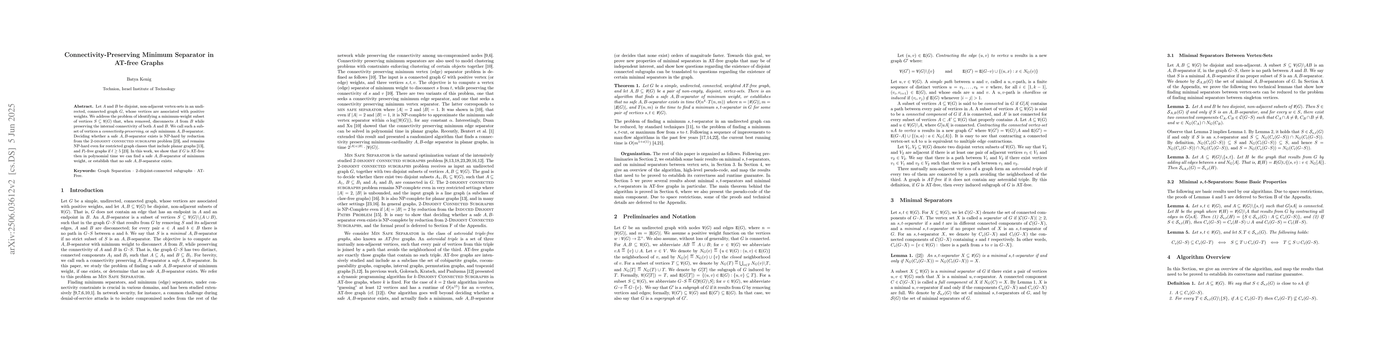 Researchers have developed a method to find a minimum-weight subset of vertices that separates two disjoint sets in an AT-free graph while preserving internal connectivity, solving a long-standing NP-hard problem.