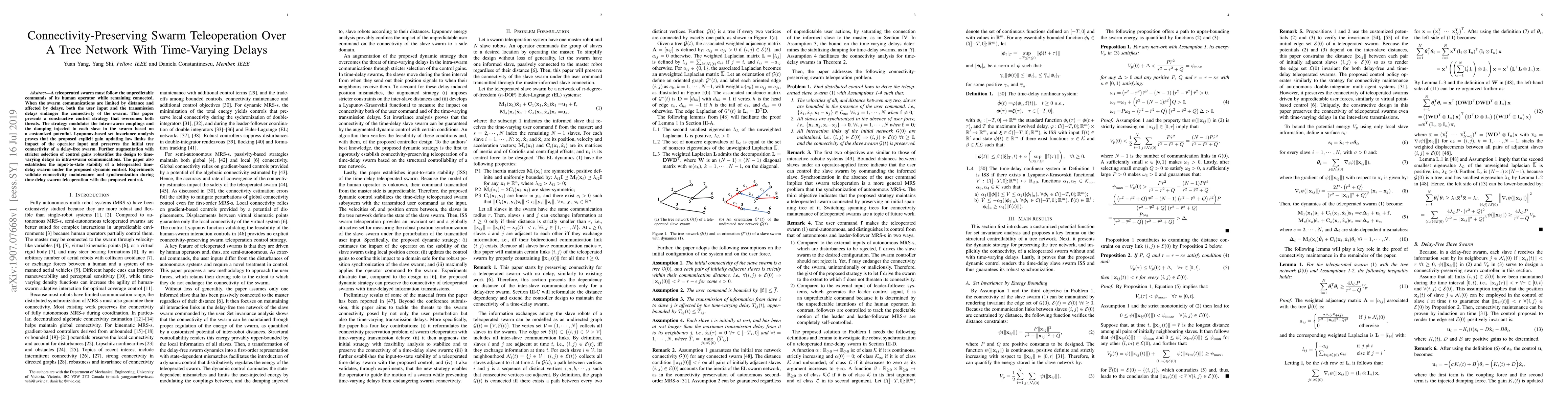 This paper proposes a control strategy to maintain connectivity and synchronization in a teleoperated swarm under time-varying delays. The strategy dynamically adjusts intra-swarm couplings and damping, ensuring stability and connectivity preservation through Lyapunov-based analysis.