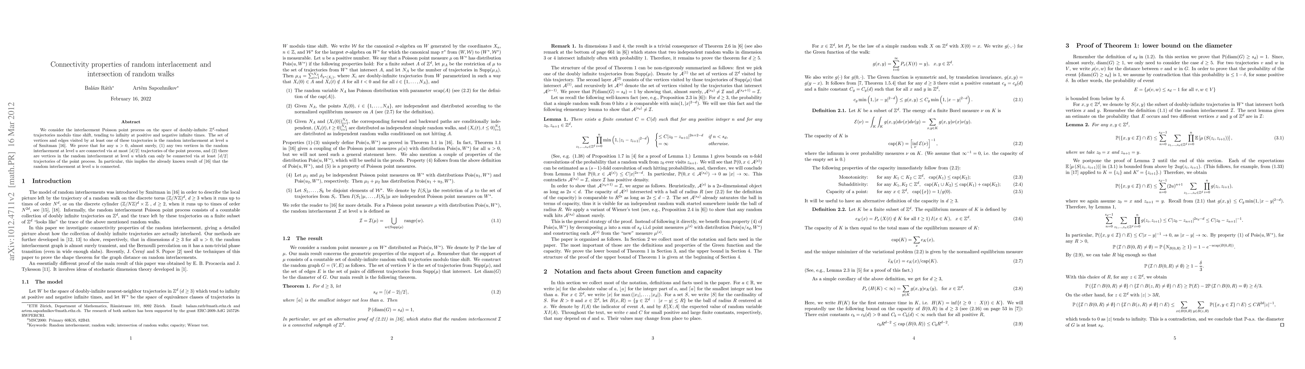 This paper investigates the connectivity properties of random interlacement in the interlacement Poisson point process. It proves that almost surely, any two vertices in the random interlacement at level u are connected via at most ceiling(d/2) trajectories, while some vertices require at least ceiling(d/2) trajectories for connection, confirming the connectivity of the random interlacement.
