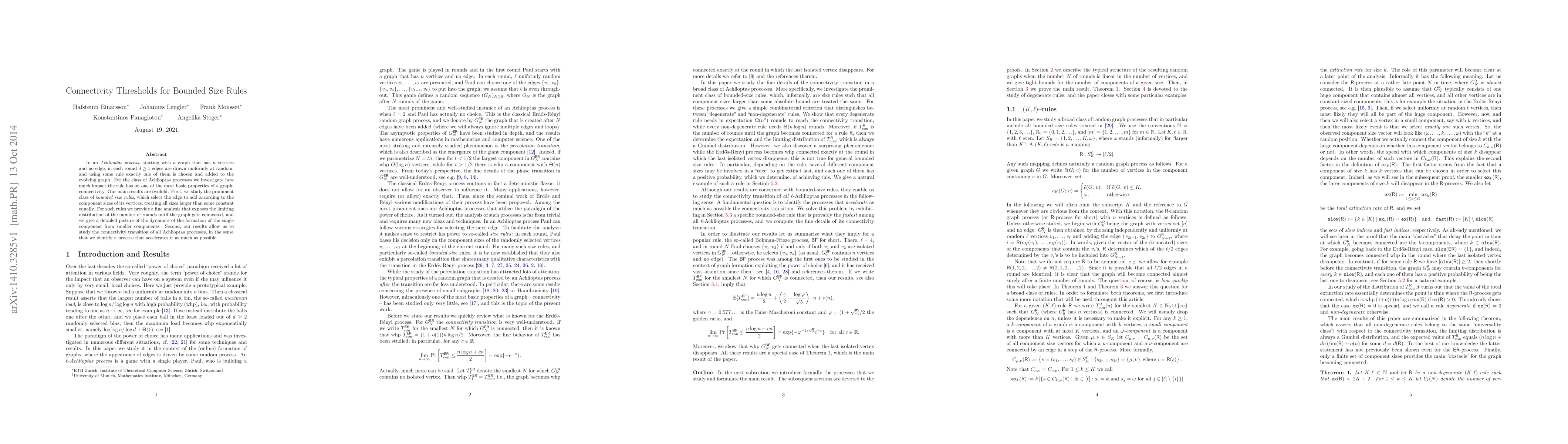 This paper investigates how a rule for adding edges to a random graph affects its connectivity, analyzing the impact of different edge selection rules on graph formation and connectedness over time.
