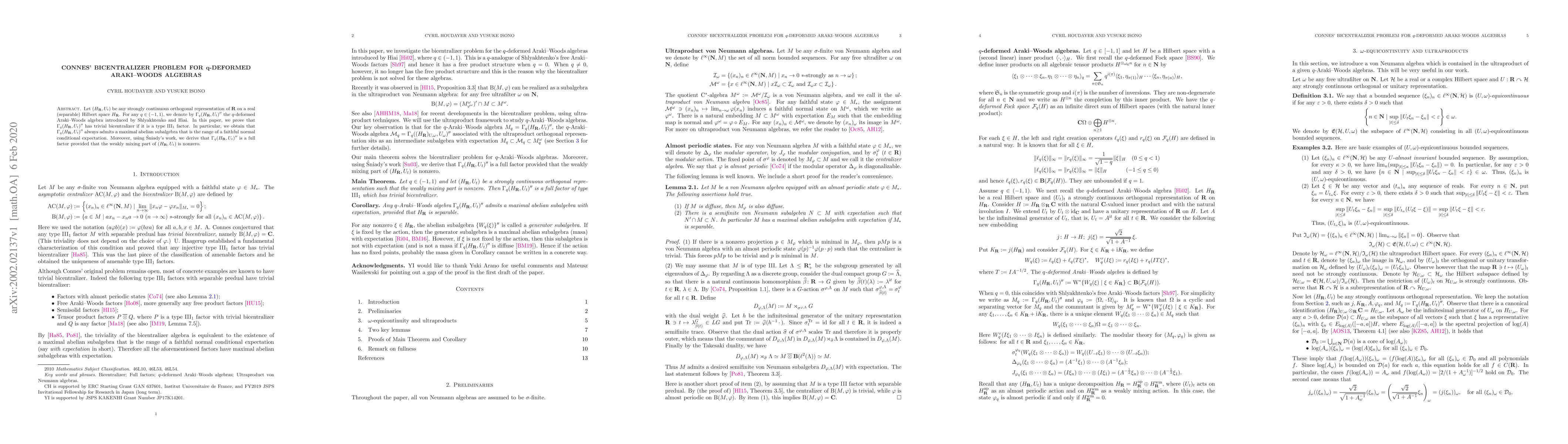 Let $(H_{\mathbf{R}}, U_t)$ be any strongly continuous orthogonal representation of $\mathbf{R}$ on a real (separable) Hilbert space $H_{\mathbf{R}}$. For any $q\in (-1,1)$, we denote by $\Gamma_q(H_{\mathbf{R}},U_t)^{\prime\prime}$ the $q$-deformed Araki-Woods algebra introduced by Shlyakhtenko and Hiai. In this paper, we prove that $\Gamma_q(H_{\mathbf{R}},U_t)^{\prime\prime}$ has trivial bicentralizer if it is a type $\rm III_1$ factor. In particular, we obtain that $\Gamma_q(H_{\mathbf{R}},U_t)^{\prime\prime}$ always admits a maximal abelian subalgebra that is the range of a faithful normal conditional expectation. Moreover, using Sniady's work, we derive that $\Gamma_q(H_{\mathbf{R}},U_t)^{\prime\prime}$ is a full factor provided that the weakly mixing part of $(H_{\mathbf{R}}, U_t)$ is nonzero.