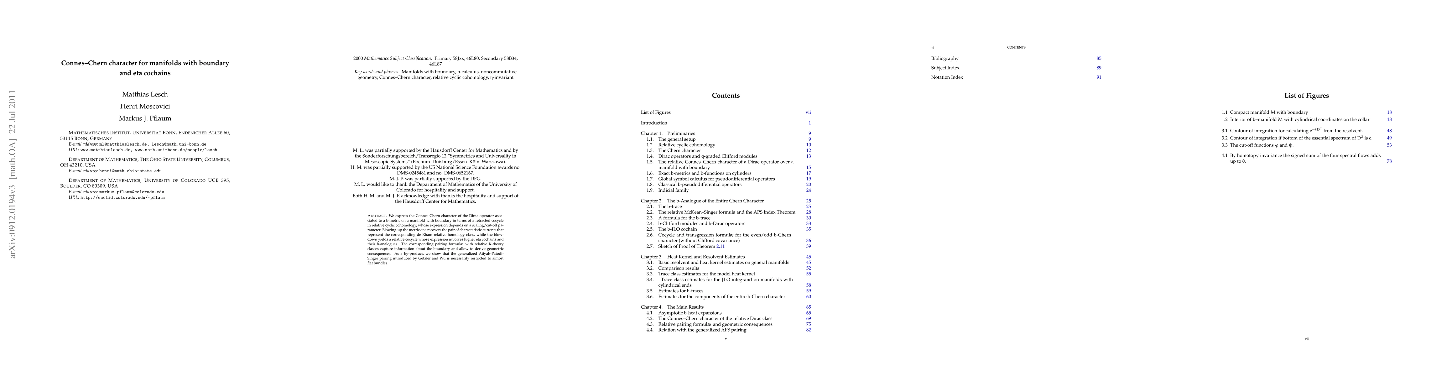 This paper establishes a Connes-Chern character for Dirac operators on manifolds with boundaries, linking it to relative cyclic cohomology and eta cochains. The character involves scaling parameters and higher eta cochains, revealing geometric information about the boundary and restricting the Atiyah-Patodi-Singer pairing to almost flat bundles.