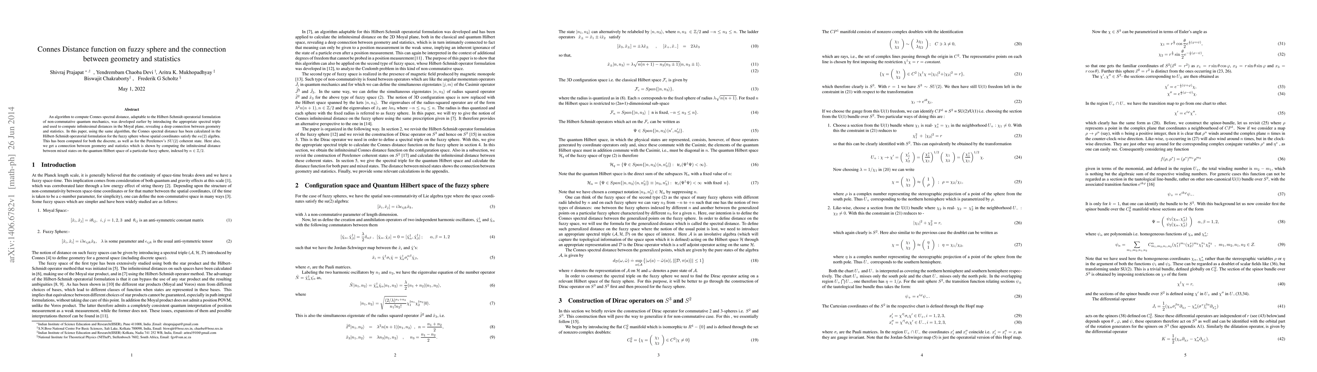 This paper computes the Connes spectral distance for the fuzzy sphere using an algorithm that connects geometry and statistics, revealing infinitesimal distances in the context of non-commutative quantum mechanics. The connection between geometry and statistics is further demonstrated through the computation of distances between mixed states on the fuzzy sphere's quantum Hilbert space.