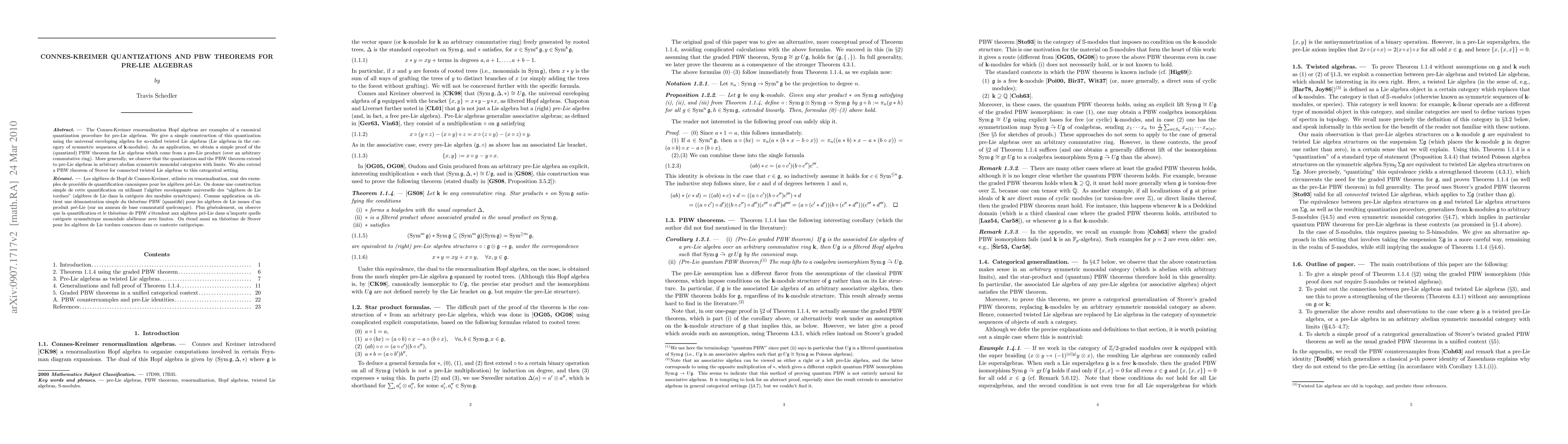 The Connes-Kreimer renormalization Hopf algebras are examples of a canonical quantization procedure for pre-Lie algebras. We give a simple construction of this quantization using the universal enveloping algebra for so-called twisted Lie algebras (Lie algebras in the category of symmetric sequences of k-modules). As an application, we obtain a simple proof of the (quantized) PBW theorem for Lie algebras which come from a pre-Lie product (over an arbitrary commutative ring). More generally, we observe that the quantization and the PBW theorem extend to pre-Lie algebras in arbitrary abelian symmetric monoidal categories with limits. We also extend a PBW theorem of Stover for connected twisted Lie algebras to this categorical setting.