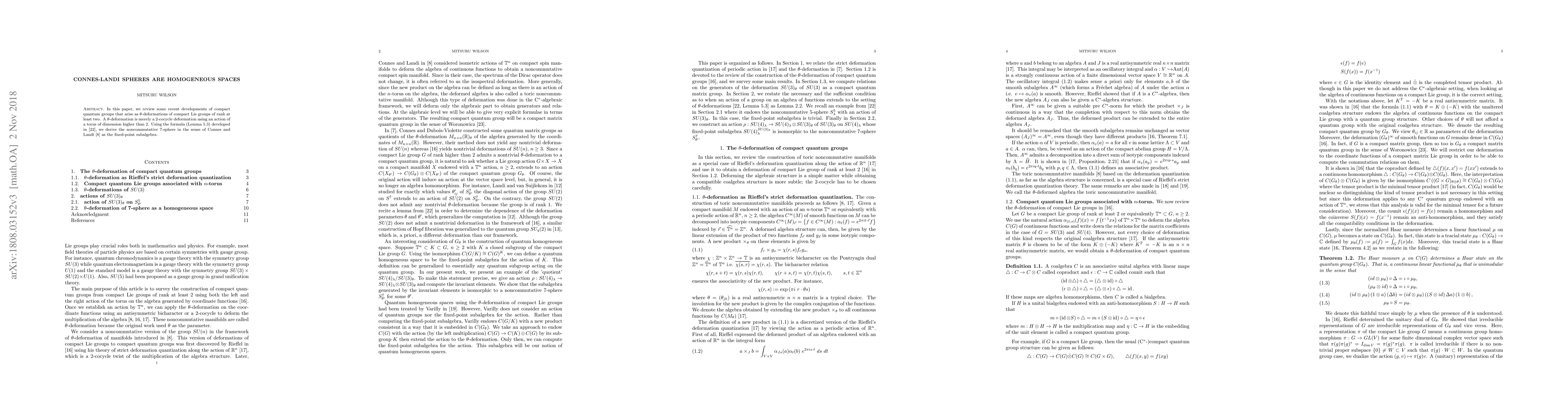 This paper explores $\theta$-deformations of compact Lie groups, leading to the development of Connes-Landi spheres as homogeneous spaces. The noncommutative 7-sphere is derived using a fixed-point subalgebra formula from a recent study.