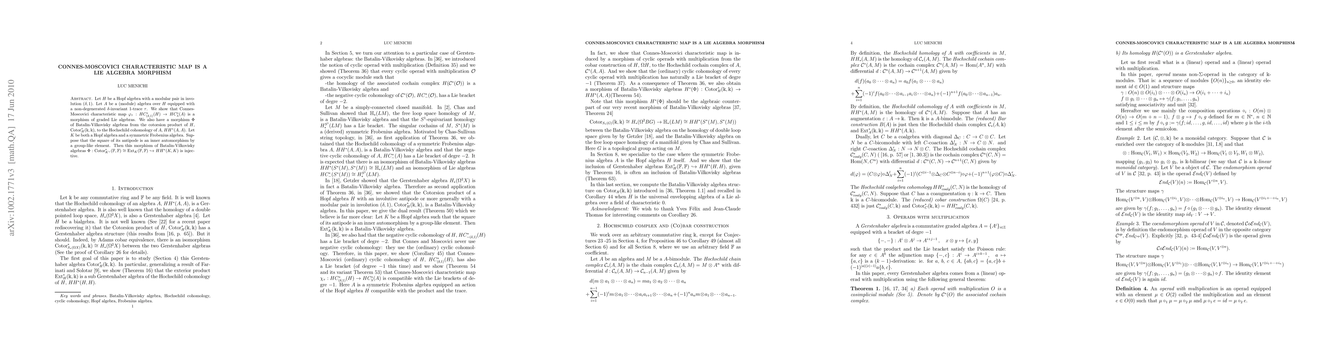 Let $H$ be a Hopf algebra with a modular pair in involution $(\Character,1)$. Let $A$ be a (module) algebra over $H$ equipped with a non-degenerated $\Character$-invariant $1$-trace $\tau$. We show that Connes-Moscovici characteristic map $\varphi_\tau:HC^*_{(\Character,1)}(H)\rightarrow HC^*_\lambda(A)$ is a morphism of graded Lie algebras. We also have a morphism $\Phi$ of Batalin-Vilkovisky algebras from the cotorsion product of $H$, $\text{Cotor}_H^*({\Bbbk},{\Bbbk})$, to the Hochschild cohomology of $A$, $HH^*(A,A)$. Let $K$ be both a Hopf algebra and a symmetric Frobenius algebra. Suppose that the square of its antipode is an inner automorphism by a group-like element. Then this morphism of Batalin-Vilkovisky algebras $\Phi:\text{Cotor}_{K^\vee}^*(\mathbb{F},\mathbb{F})\cong \text{Ext}_{K}(\mathbb{F},\mathbb{F}) \hookrightarrow HH^*(K,K)$ is injective.