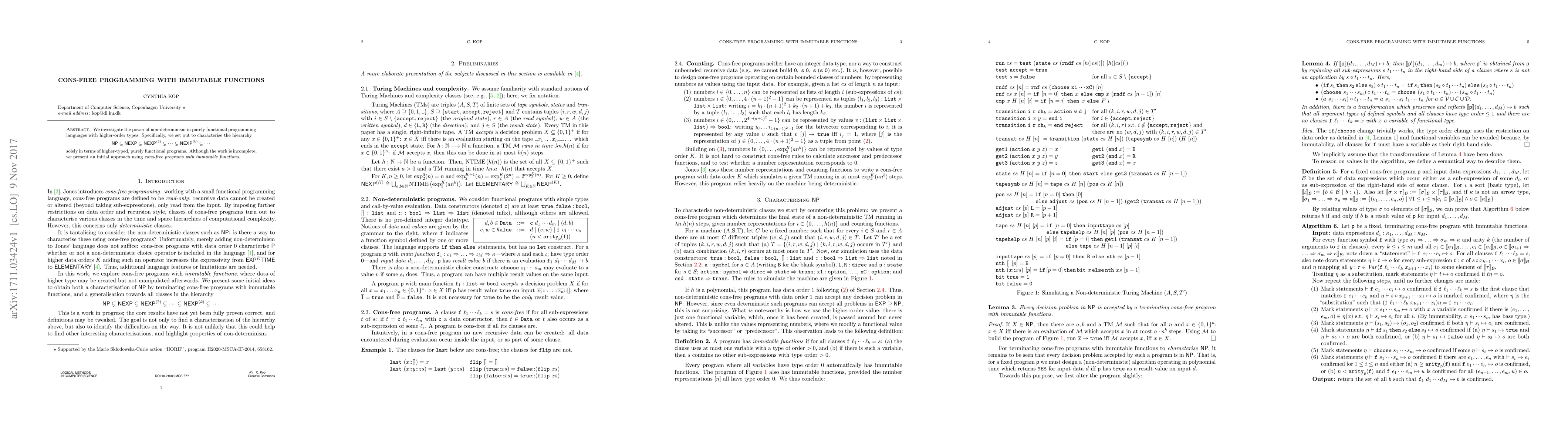 This paper explores how non-determinism can be represented in purely functional programming languages through higher-order types and proposes an initial method using cons-free, immutable functions to characterize complexity hierarchies like NP, NEXP, and beyond. The work aims to establish these hierarchies purely via functional programs.
