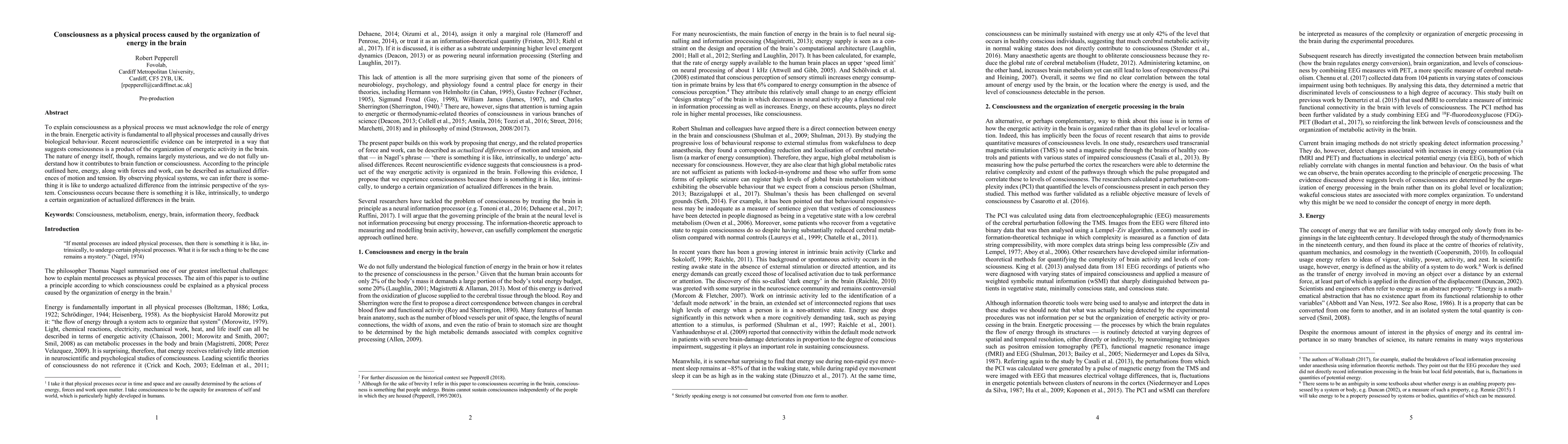 This paper posits that consciousness is a physical process driven by the organization of energy in the brain, suggesting that energetic activity underpins biological behavior and that consciousness arises from the intrinsic experience of actualized differences in the brain's energetic organization. Despite the mysterious nature of energy itself, the paper argues that consciousness can be understood as an intrinsic perspective of these energetic processes.