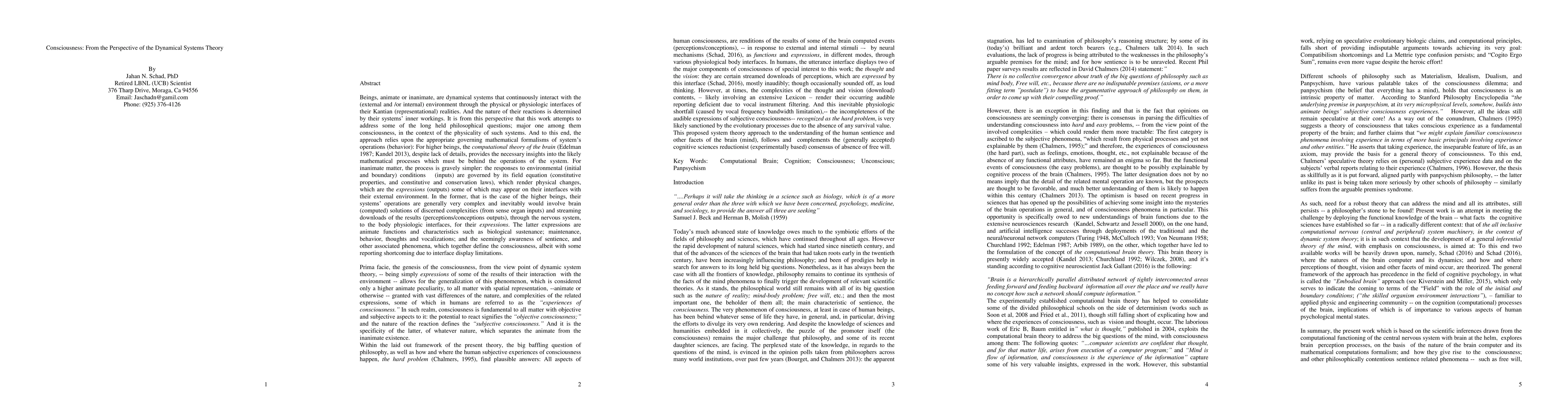 Beings, animate or inanimate, are dynamical systems which continuously interact with the (external and /or internal) environment through the physical or physiologic interfaces of their Kantian (representational) realities. And the nature of their interactions is determined by the inner workings of their systems. It is from this perspective that this work attempts to address some of the long-held philosophical questions, major one among them consciousness-- in the context of the physicality of the dynamic systems.