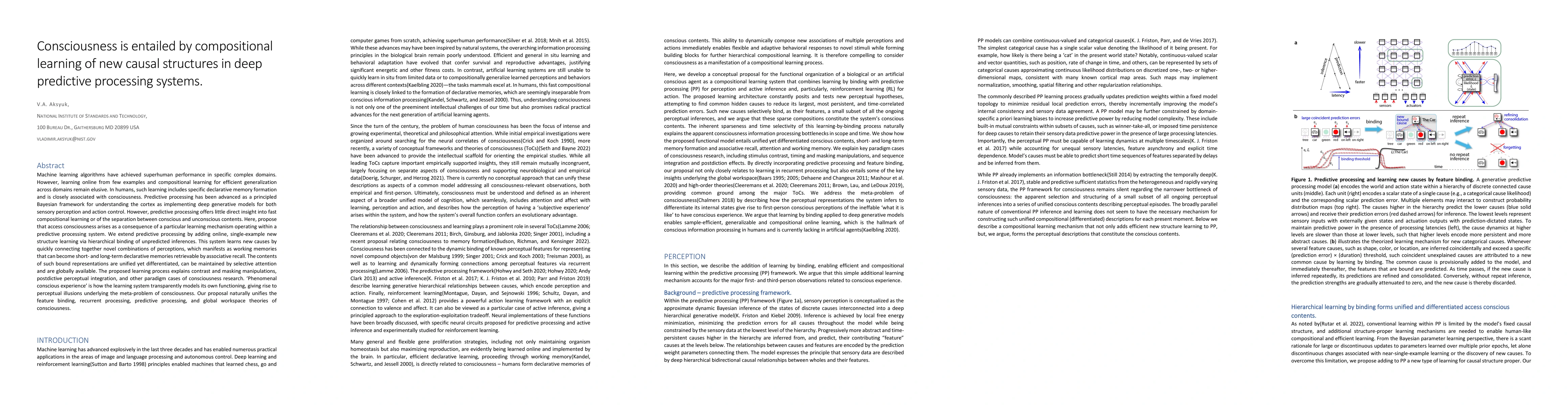 This paper proposes that consciousness arises from predictive processing systems that learn through hierarchical binding of unpredicted inferences, enabling flexible generalization and declarative memory formation. It suggests that such systems may perceive themselves as conscious, thereby addressing the meta-problem of consciousness.