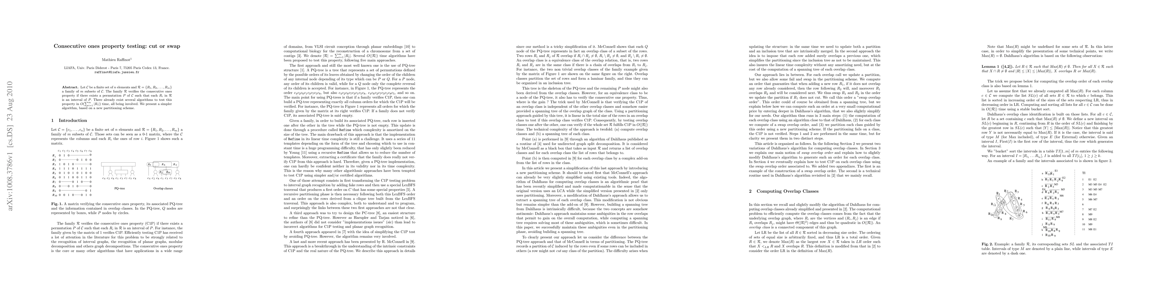 Let C be a finite set of $N elements and R = {R_1,R_2, ..,R_m} a family of M subsets of C. The family R verifies the consecutive ones property if there exists a permutation P of C such that each R_i in R is an interval of P. There already exist several algorithms to test this property in sum_{i=1}^m |R_i| time, all being involved. We present a simpler algorithm, based on a new partitioning scheme.