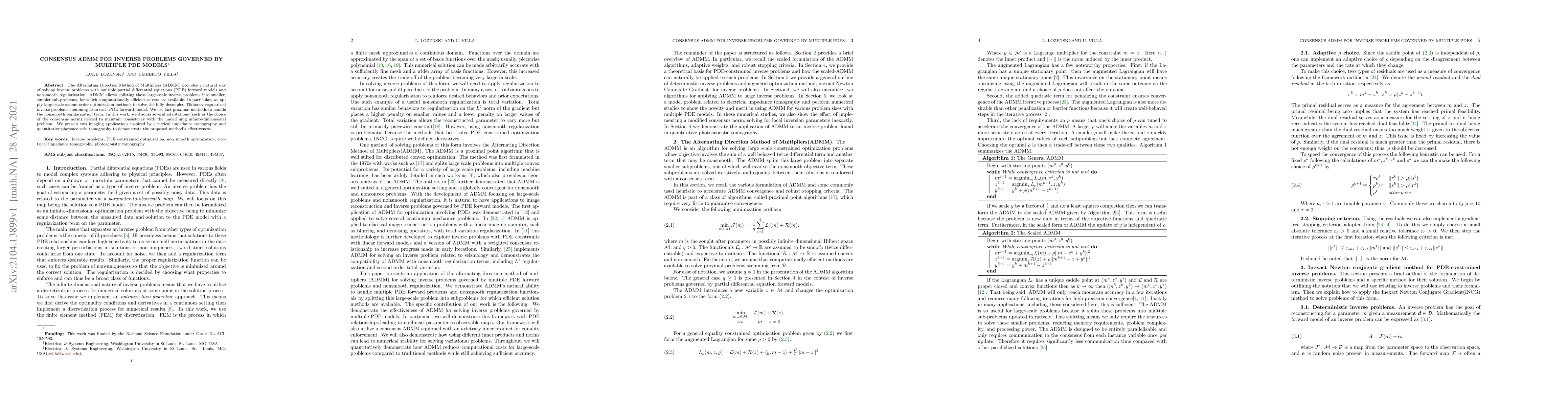 Researchers introduce a new method called Consensus ADMM to solve large-scale inverse problems with multiple partial differential equations, using efficient solvers for sub-problems and fast proximal methods for nonsmooth regularization.