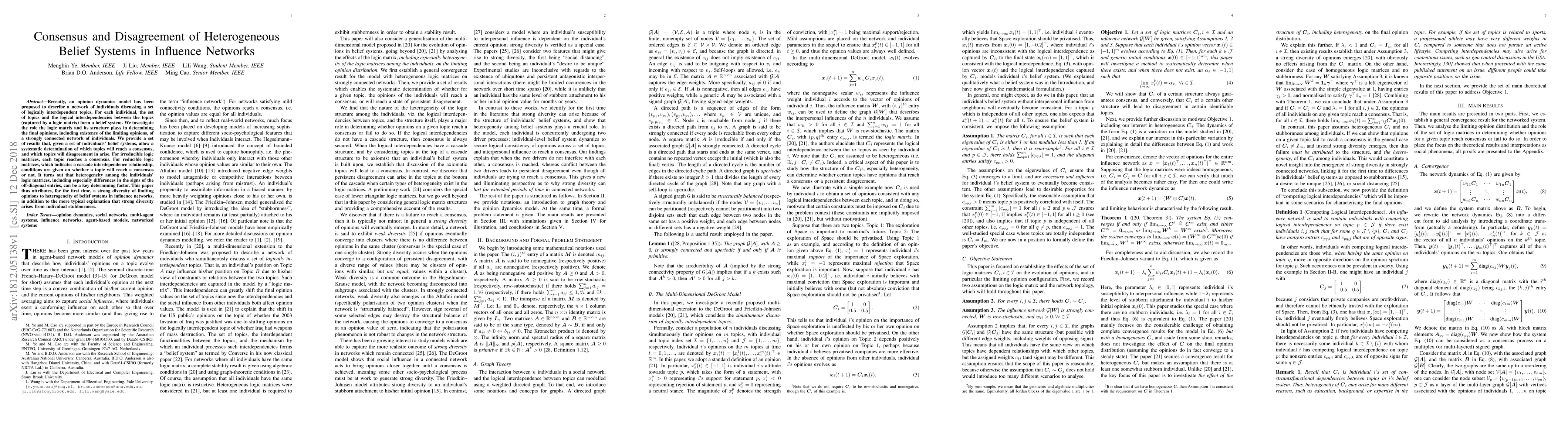 This research investigates how heterogeneous belief systems in networks impact consensus or disagreement on topics, finding that differences in logic matrices, especially signs of off-diagonal entries, play a crucial role. It distinguishes between irreducible and reducible matrices to predict consensus, attributing diverse limiting opinions to belief system heterogeneity, beyond individual stubbornness.