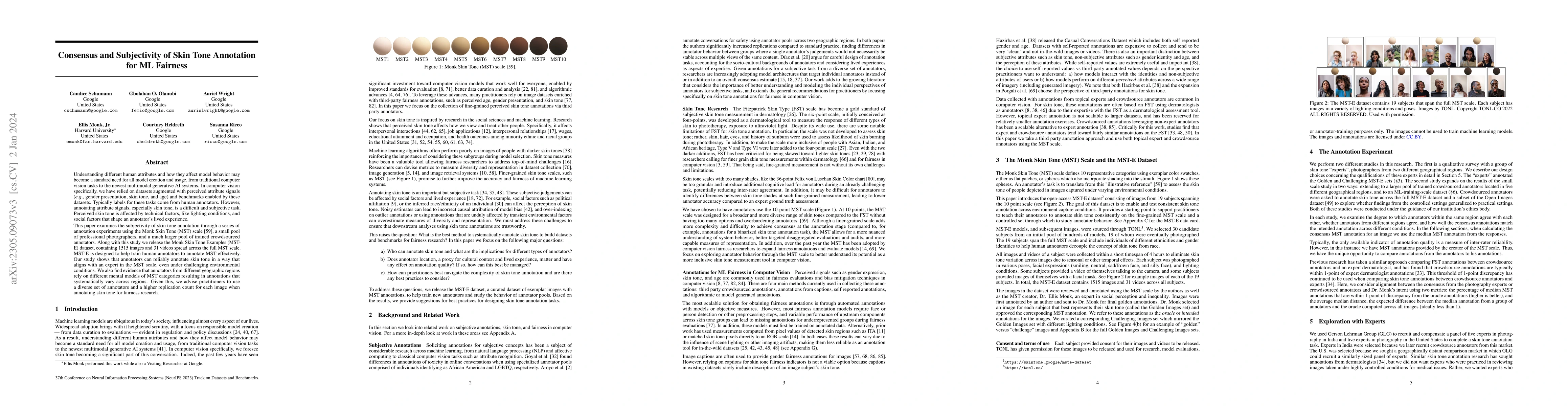 Understanding different human attributes and how they affect model behavior may become a standard need for all model creation and usage, from traditional computer vision tasks to the newest multimodal generative AI systems. In computer vision specifically, we have relied on datasets augmented with perceived attribute signals (e.g., gender presentation, skin tone, and age) and benchmarks enabled by these datasets. Typically labels for these tasks come from human annotators. However, annotating attribute signals, especially skin tone, is a difficult and subjective task. Perceived skin tone is affected by technical factors, like lighting conditions, and social factors that shape an annotator's lived experience. This paper examines the subjectivity of skin tone annotation through a series of annotation experiments using the Monk Skin Tone (MST) scale, a small pool of professional photographers, and a much larger pool of trained crowdsourced annotators. Along with this study we release the Monk Skin Tone Examples (MST-E) dataset, containing 1515 images and 31 videos spread across the full MST scale. MST-E is designed to help train human annotators to annotate MST effectively. Our study shows that annotators can reliably annotate skin tone in a way that aligns with an expert in the MST scale, even under challenging environmental conditions. We also find evidence that annotators from different geographic regions rely on different mental models of MST categories resulting in annotations that systematically vary across regions. Given this, we advise practitioners to use a diverse set of annotators and a higher replication count for each image when annotating skin tone for fairness research.