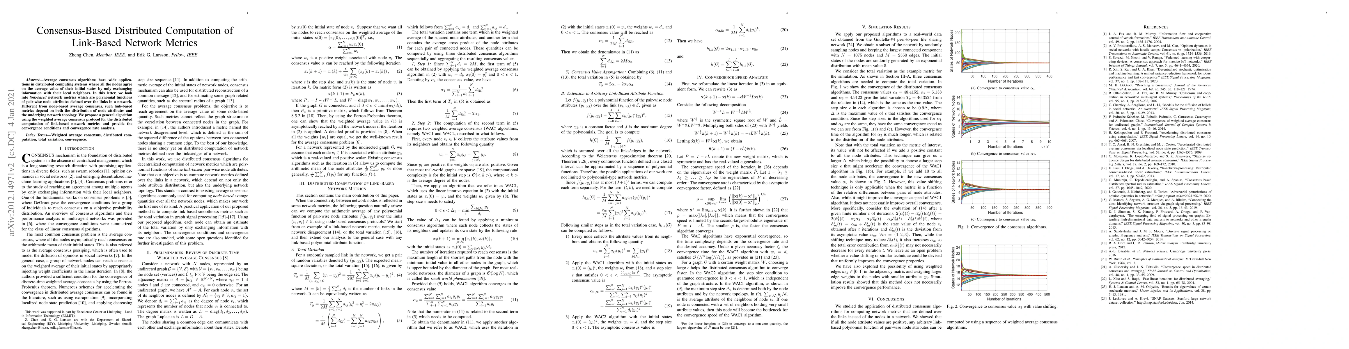 This paper proposes a consensus-based algorithm for distributed computation of link-based network metrics, which are influenced by both node attributes and network topology. The weighted average consensus protocol is used to achieve convergence conditions and analyze the convergence rate.