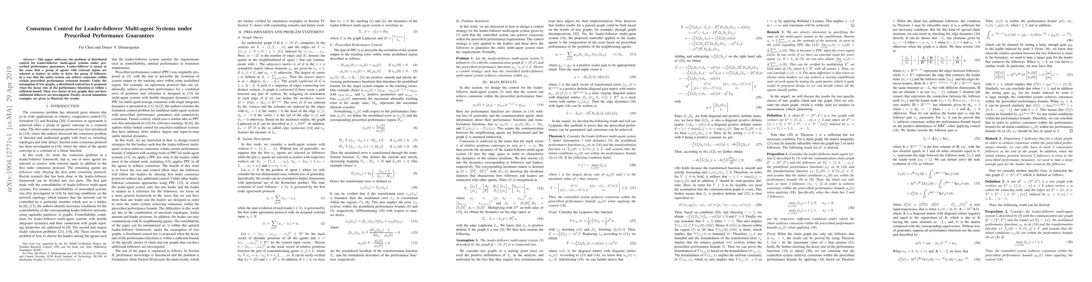 This paper proposes a distributed control law for leader-follower multi-agent systems under prescribed performance guarantees, ensuring consensus within specified transient bounds. Simulation results demonstrate the effectiveness of the proposed control method for various tree graph structures.