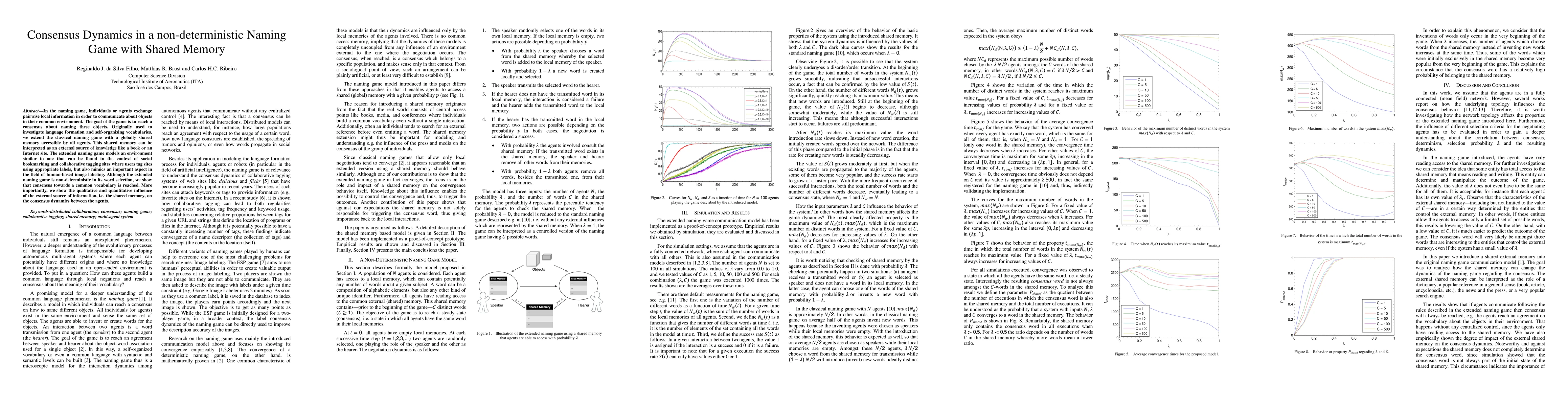 The paper introduces an extension to the naming game model that incorporates a shared memory accessible to agents with a certain probability, demonstrating convergence to consensus despite the non-deterministic nature of word selection.