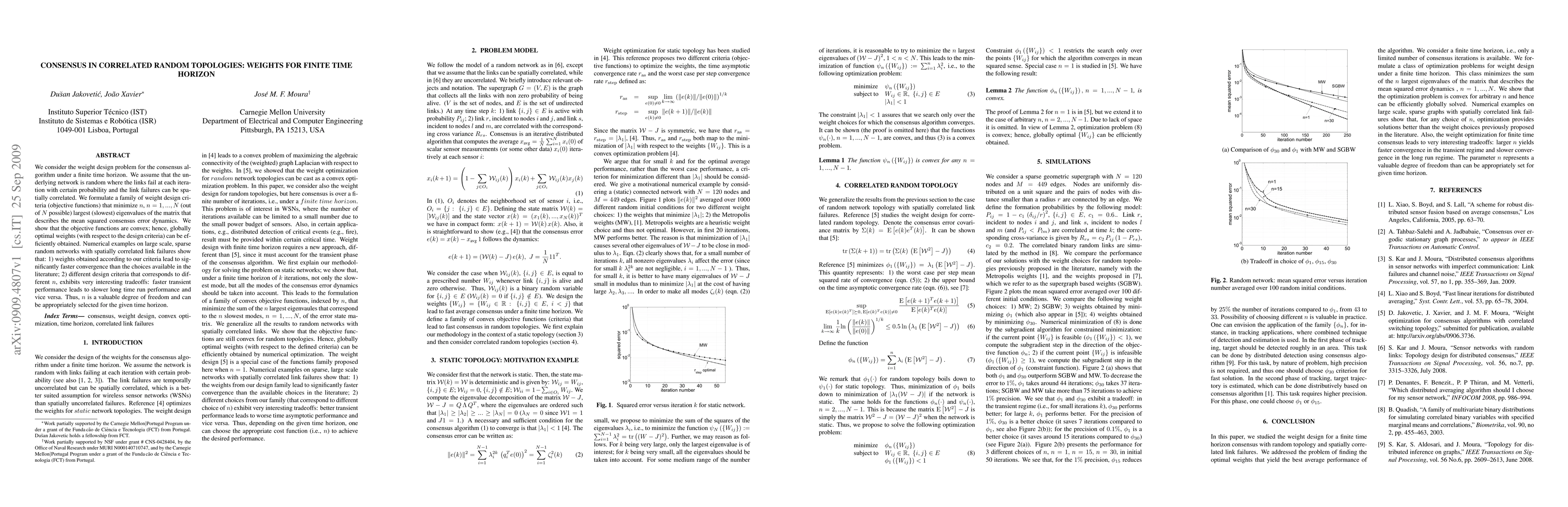 We consider the weight design problem for the consensus algorithm under a finite time horizon. We assume that the underlying network is random where the links fail at each iteration with certain probability and the link failures can be spatially correlated. We formulate a family of weight design criteria (objective functions) that minimize n, n = 1,...,N (out of N possible) largest (slowest) eigenvalues of the matrix that describes the mean squared consensus error dynamics. We show that the objective functions are convex; hence, globally optimal weights (with respect to the design criteria) can be efficiently obtained. Numerical examples on large scale, sparse random networks with spatially correlated link failures show that: 1) weights obtained according to our criteria lead to significantly faster convergence than the choices available in the literature; 2) different design criteria that corresponds to different n, exhibits very interesting tradeoffs: faster transient performance leads to slower long time run performance and vice versa. Thus, n is a valuable degree of freedom and can be appropriately selected for the given time horizon.