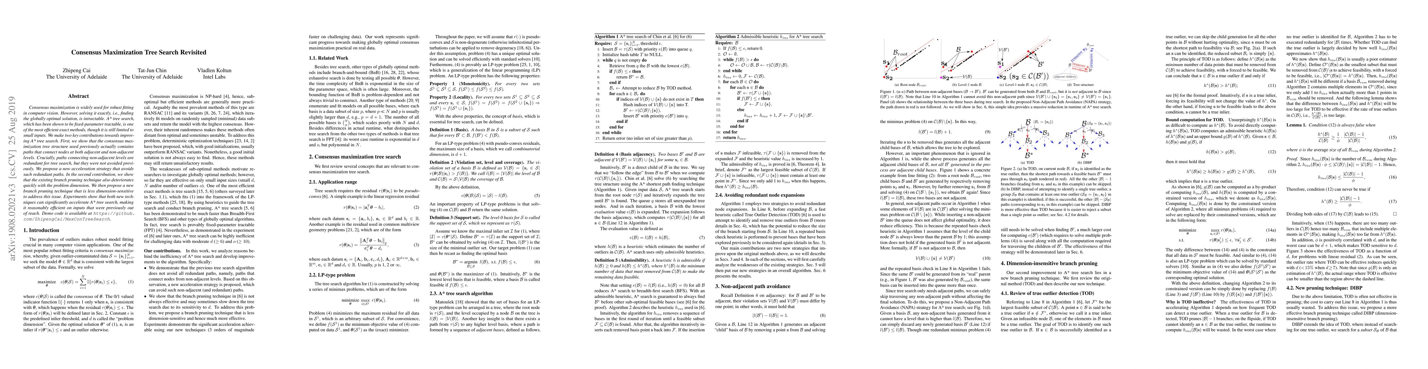 A new approach accelerates A* tree search in consensus maximization by avoiding redundant paths and reducing dimension sensitivity, making it efficient on previously unreachable inputs.