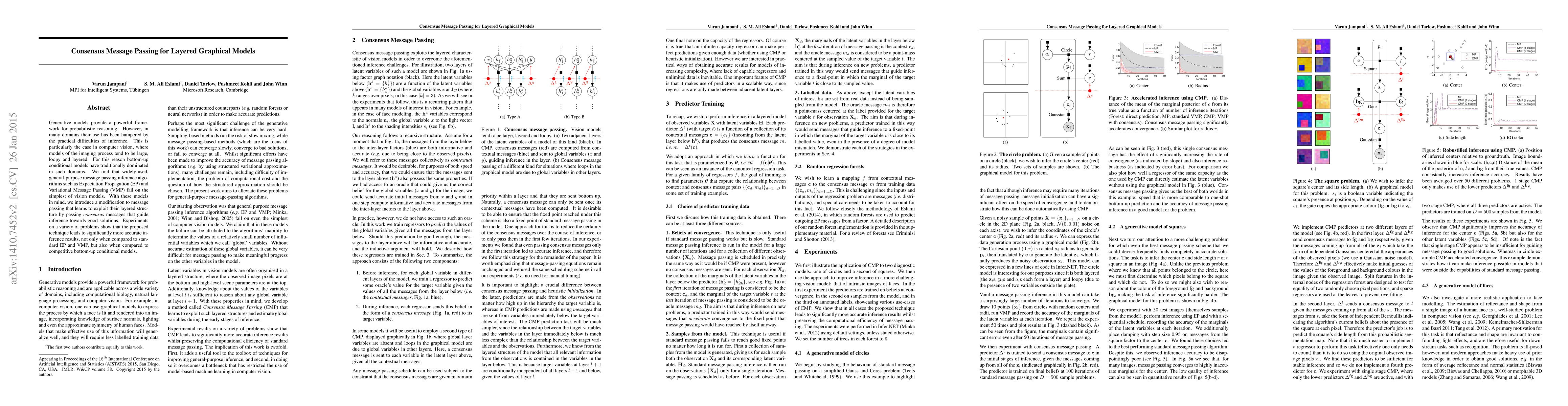 This paper proposes a consensus message passing technique for layered graphical models, particularly in computer vision, to improve inference accuracy. The method outperforms traditional algorithms like Expectation Propagation and Variational Message Passing, as well as competitive bottom-up conditional models, by leveraging the layered structure of the models.