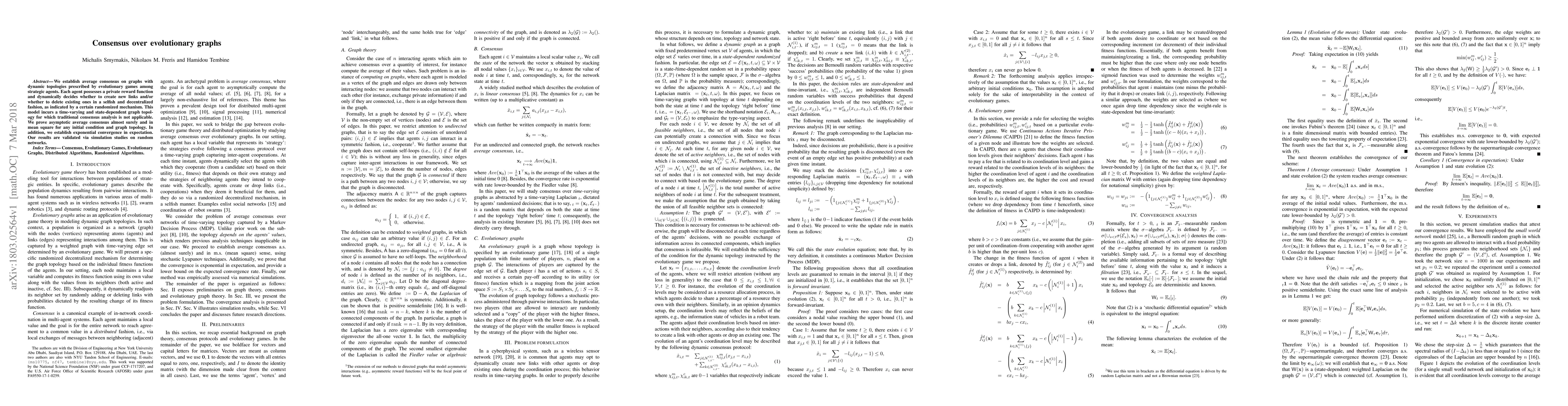 Researchers prove that evolutionary graphs, where agents dynamically create and delete links based on private reward functions, will reach a consensus in the long run, with asymptotic average consensus almost surely and exponentially fast convergence.