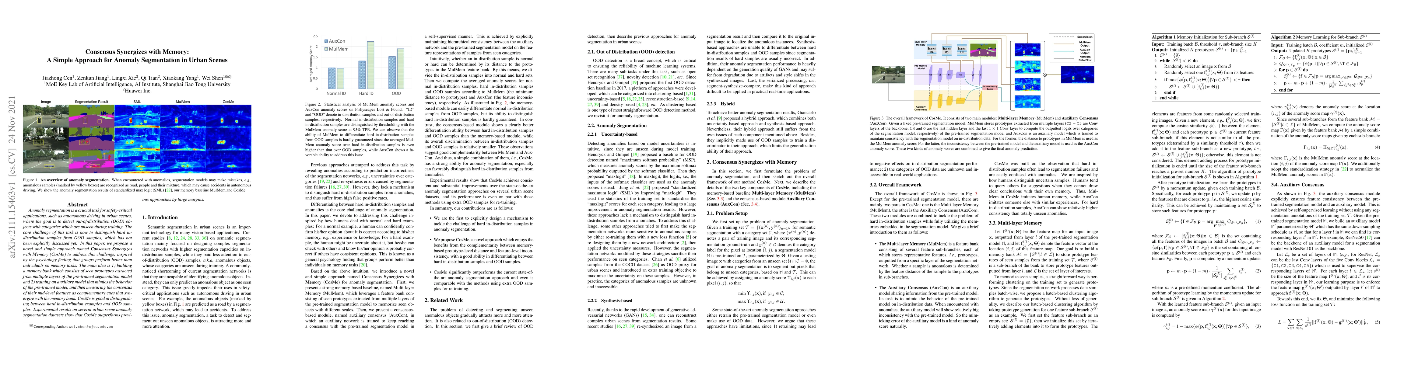 Anomaly segmentation is a crucial task for safety-critical applications, such as autonomous driving in urban scenes, where the goal is to detect out-of-distribution (OOD) objects with categories which are unseen during training. The core challenge of this task is how to distinguish hard in-distribution samples from OOD samples, which has not been explicitly discussed yet. In this paper, we propose a novel and simple approach named Consensus Synergizes with Memory (CosMe) to address this challenge, inspired by the psychology finding that groups perform better than individuals on memory tasks. The main idea is 1) building a memory bank which consists of seen prototypes extracted from multiple layers of the pre-trained segmentation model and 2) training an auxiliary model that mimics the behavior of the pre-trained model, and then measuring the consensus of their mid-level features as complementary cues that synergize with the memory bank. CosMe is good at distinguishing between hard in-distribution examples and OOD samples. Experimental results on several urban scene anomaly segmentation datasets show that CosMe outperforms previous approaches by large margins.