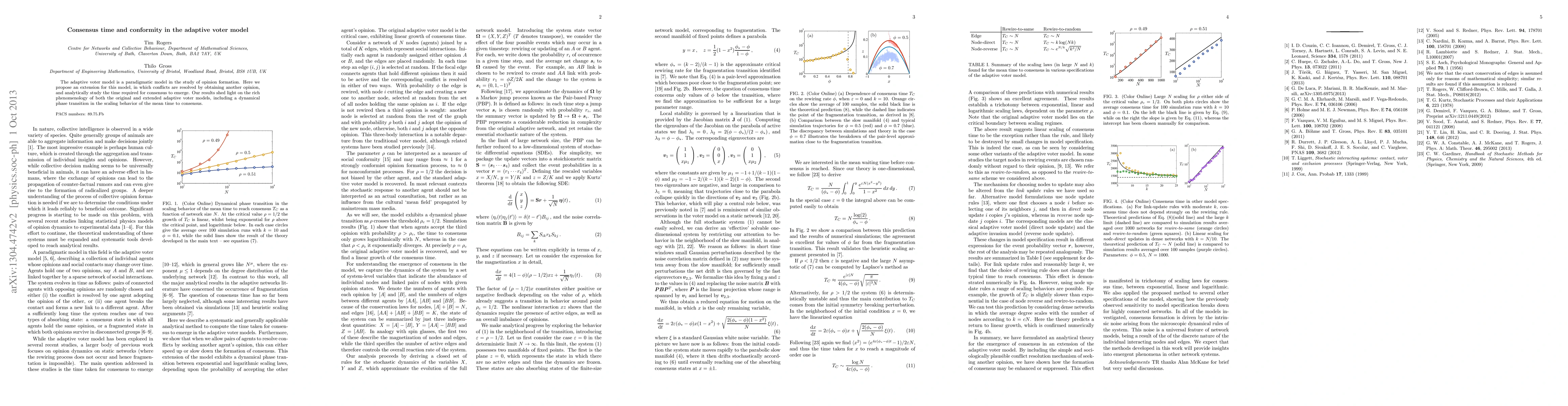 This paper extends the adaptive voter model to resolve conflicts by seeking new opinions and analyzes the time for consensus emergence. It reveals a dynamical phase transition in the mean time to consensus, enhancing the understanding of opinion dynamics in both the original and extended models.