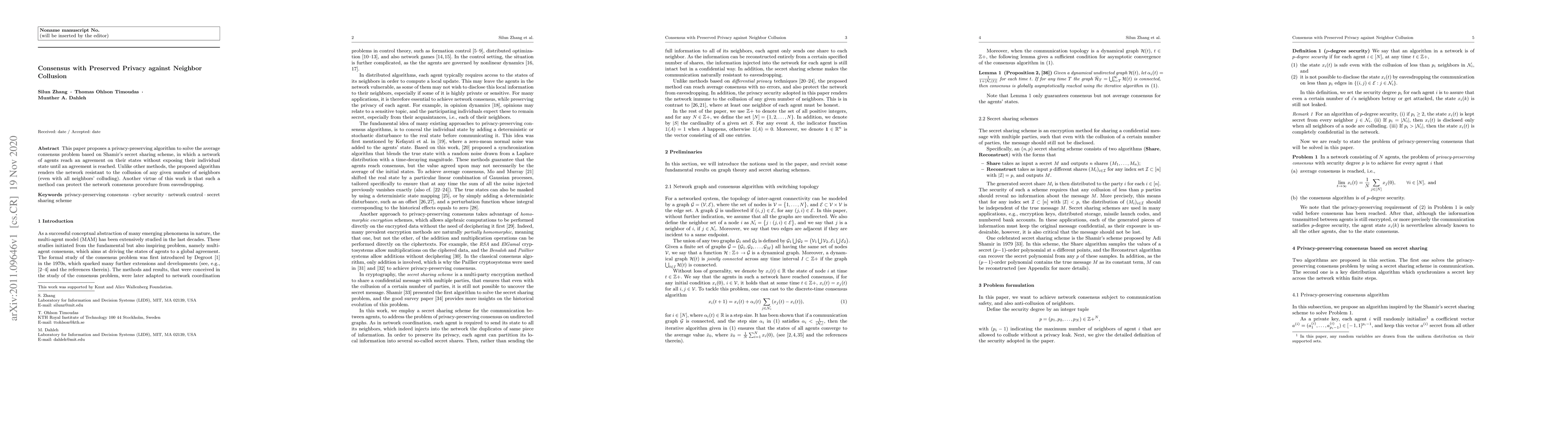 A new algorithm protects network consensus from neighbor collusion and eavesdropping using Shamir's secret sharing scheme, ensuring individual states remain private until agreement is reached.
