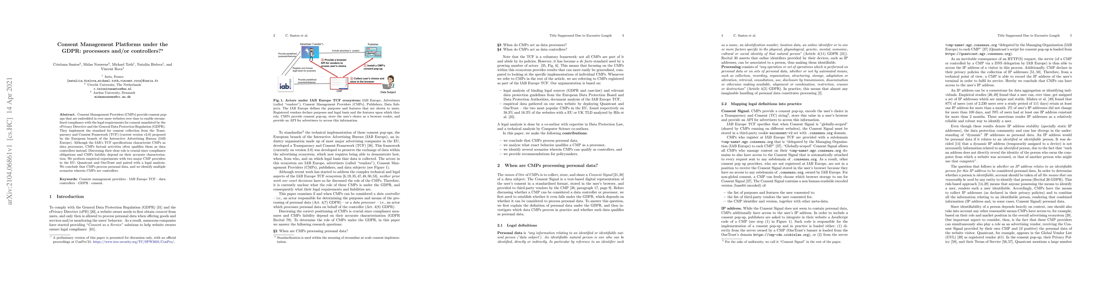 The paper presents an empirical analysis and legal examination of CMPs' roles as data processors or controllers under the GDPR, identifying scenarios where CMPs function as controllers due to their data processing activities.