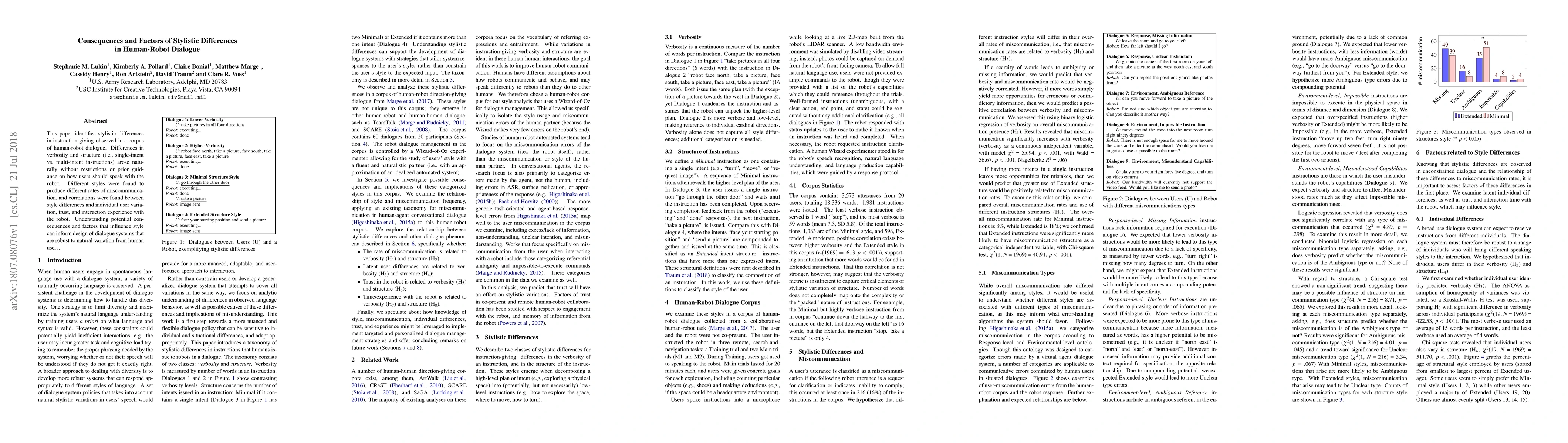 This paper examines stylistic differences in human-robot dialogues, revealing that variations in verbosity and instruction structure lead to differing rates of miscommunication. It highlights correlations between these styles and factors like user trust and experience, aiming to inform the design of more adaptable dialogue systems.
