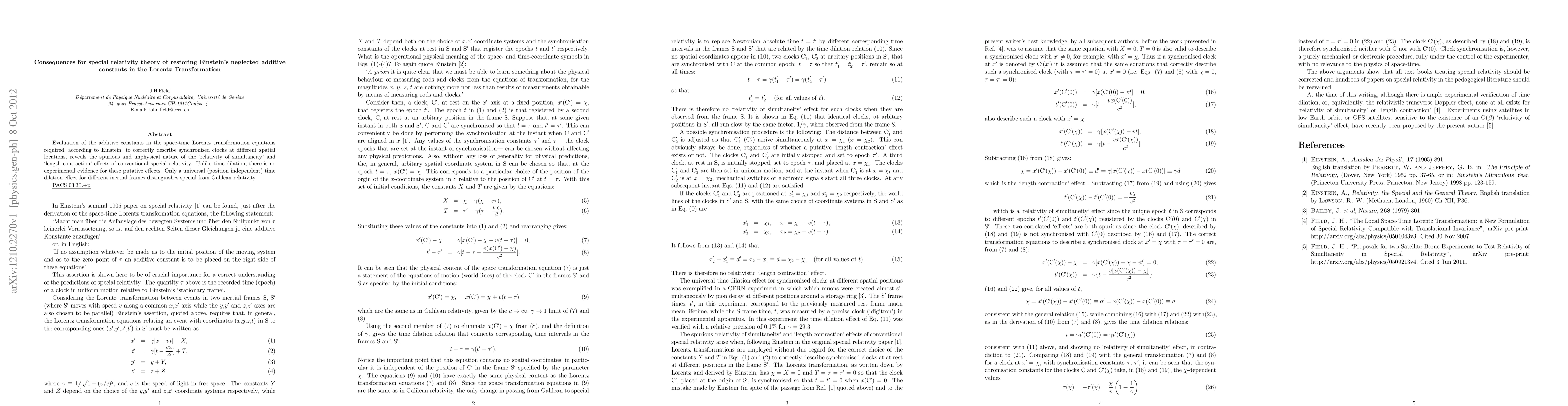 This paper explores the implications of reinstating Einstein's overlooked additive constants in the Lorentz transformation, revealing that 'relativity of simultaneity' and 'length contraction' lack empirical support, while universal time dilation remains the key distinguishing feature between special and Galilean relativity.