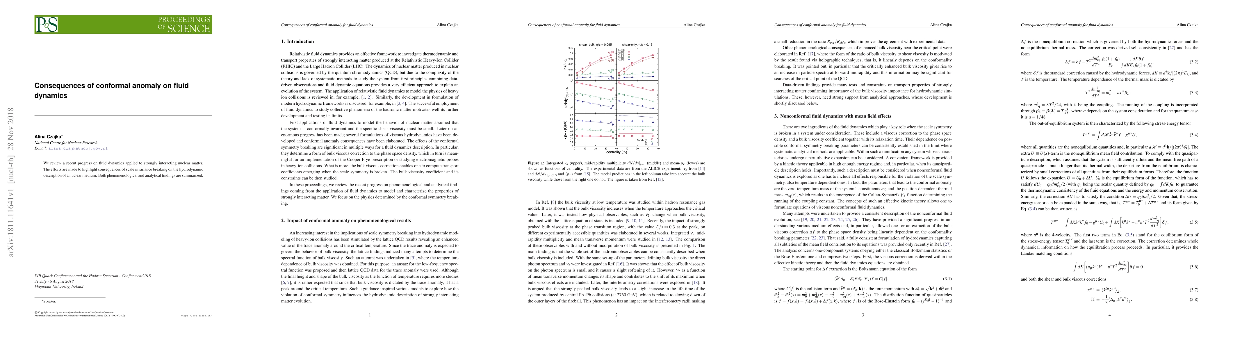 We review a recent progress on fluid dynamics applied to strongly interacting nuclear matter. The efforts are made to highlight consequences of scale invariance breaking on the hydrodynamic description of a nuclear medium. Both phenomenological and analytical findings are summarized.